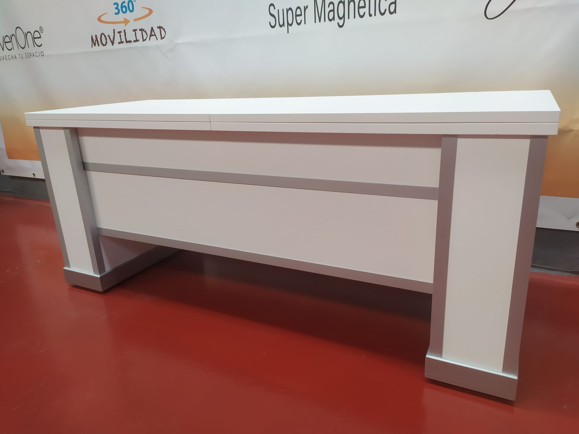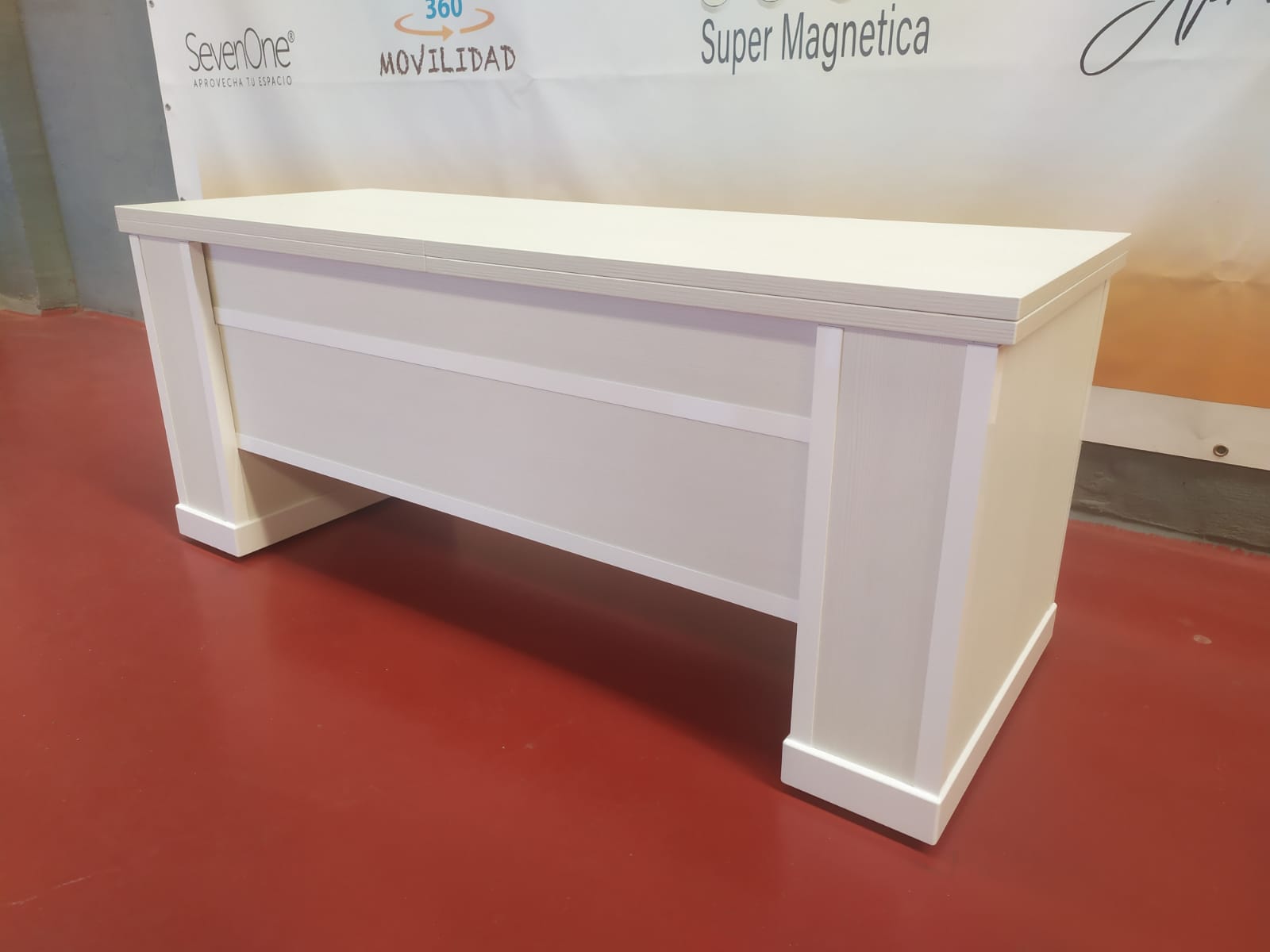 Mesa en color blanca con perfilería blanca y encímera color Cambrian