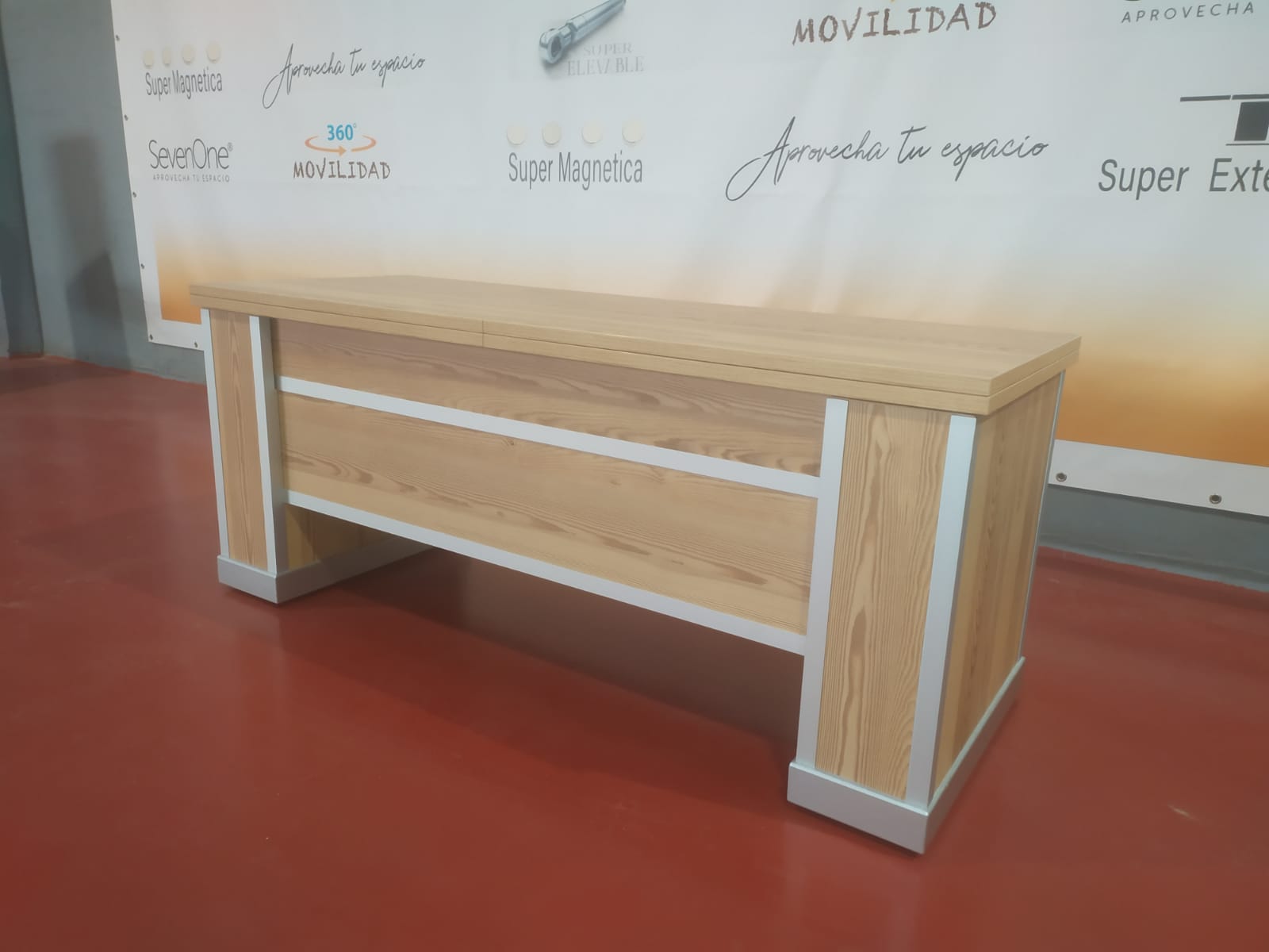 Mesa en color Pino Pasadena y perfilería en aluminio